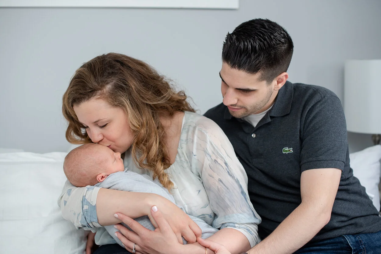 In home lifestyle portraits with a new baby are very laid back and include lots of candid photos. I find it allows new parents to be relaxed, in their own home, with anything the baby may need close at hand. We utilize lots of cozy space in the home, the nursery, living room, and usually master bedroom. All the places you most often are with your little one, rocking them, soothing them and laughing with them.